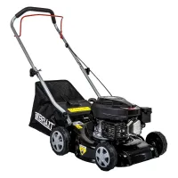В газонокосилке установлен широкий режущий нож с толстыми лопастями из твердосплавного металла. За счет этого он эффективно справляется даже с жесткой растительностью. Помимо этого, корпус модели изготовлен из стали. Прочный материал надежно защищает внутренние элементы от случайных повреждений.
