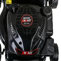 Задние колеса газонокосилки BRAIT BR3540 больше передних в диаметре. Это облегчает прохождение по неровным участках лужайки. Помимо этого, на колеса нанесен рельефный рисунок. Протектор повышает сцепление с поверхностью и позволяет исключить появление заметных следов колес на газоне.