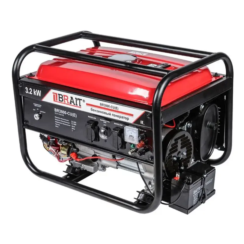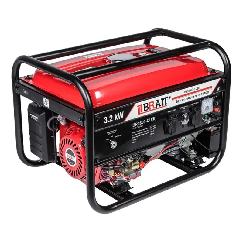 Генератор бензиновый BRAIT BR-3800CU(E) – подходящий вариант для тех, кто ищет однофазную модель для аварийного снабжения электричеством в ситуациях отсутствия электросети. Его часто приобретают для строительных и ремонтных площадок, загородных домов, дач, коттеджей, личного хозяйства, социальных объектов и т.д. К этому бензиновому генератору можно подключать мощные бытовые электроприборы и различное хозяйственное оборудование. Его номинальная мощность составляет 2500 ватт, при этом агрегат производит качественное электричество 220 В.