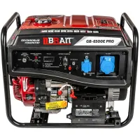 Генератор бензиновый BRAIT GB-6500E PRO оснащен профессиональным одноцилиндровым, 4-тактным, бензиновым двигателем мощностью 15 л.с., с функцией "легкий старт" и датчиком низкого уровня масла. Оснащен электростартером (аккумулятор в комплекте). Минимальный моторесурс 800 м/часов. Запатентованный высококачественноый синхронный альтернатор с защитой от перегрева, изготовленный из горячекатаных кремнестальных листов и обмотками с высоким КПД до 80%.