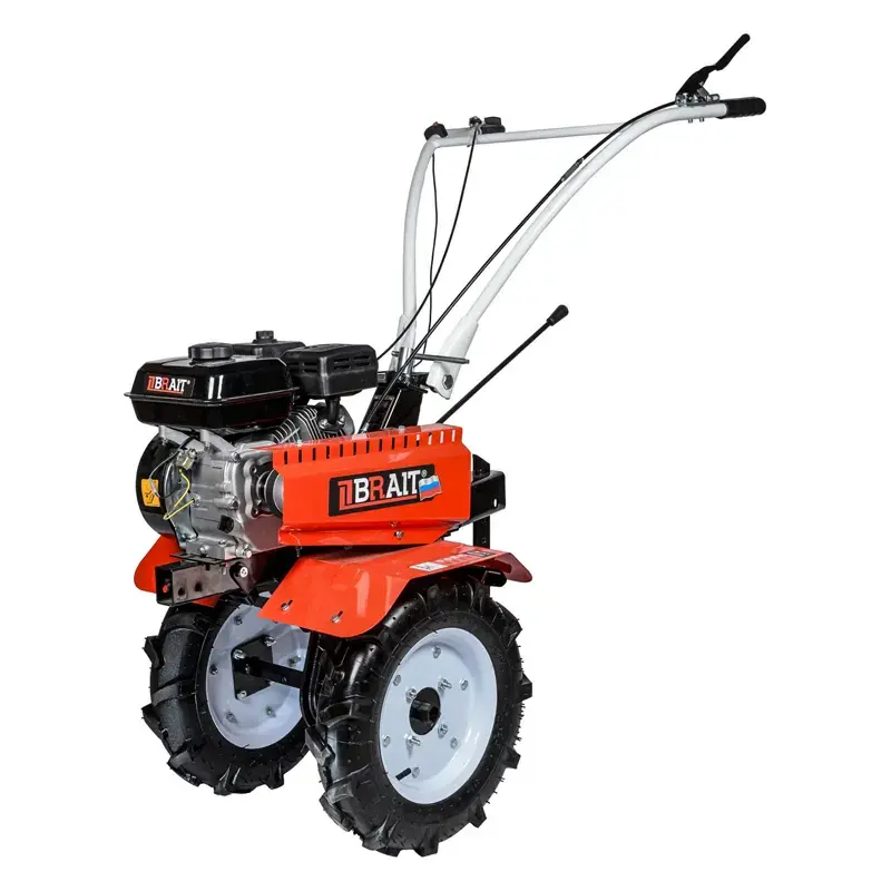 Мотокультиватор BRAIT МКР402S — техника, предназначенная для обработки участков небольшой площади. Данная модель отличается высоким качеством сборки, что делает ее надежной и обеспечивает долгий срок службы. Изделие изготовлено в России при этом полностью соответствует всем европейским нормам качества и безопасности. Этот мотокультиватор подойдет и владельцу фермерского хозяйства, и обычному датчику. Функционал BRAIT МКР402S можно без труда расширить с помощью бороны, косилки, окучника, картофелесажателя и прочего вспомогательного оборудования. В итоге удастся выполнять большой перечень работ, в том числе вспахать почву, высадить и окучить растения, собрать урожай, скосить траву и пр.