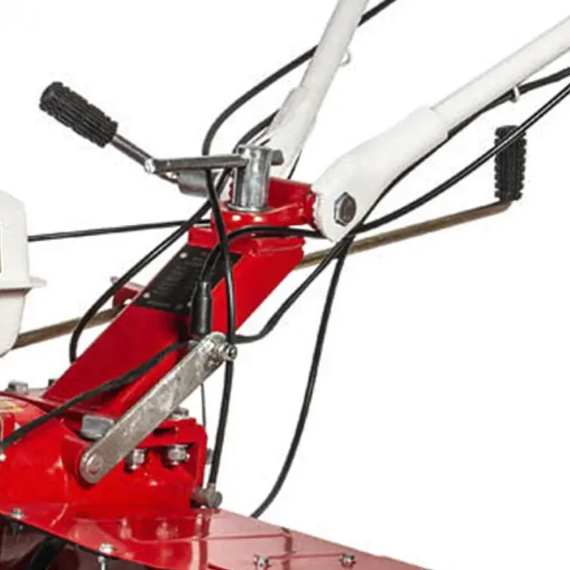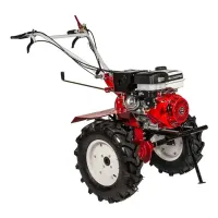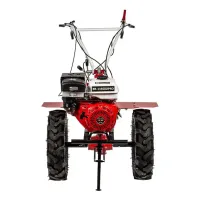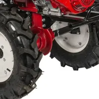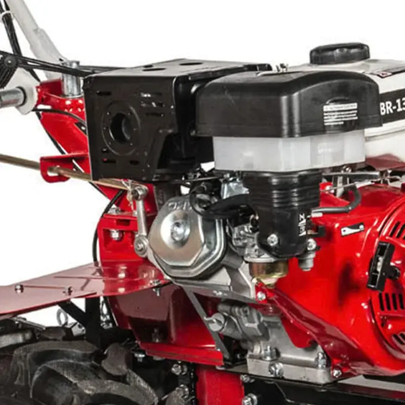 Мотоблок BRAIT BR-135GDD PRO работает на 4-тактном, одноцилиндровом, бензиновом японском двигателе, запускаемом вручную. Специальное устройство цилиндра двигателя способствует улучшению теплоотдачи и увеличивает ресурс работы. Двигатель с рабочим объемом 450 куб.см имеет диаметр выходного вала 25 мм. Объема топливного бака 6,5 л хватает на 3 часа бесперебойной работы. Четырехступенчатая коробка передач с реверсом предлагает варианты 3-х скоростей вперед и 1 – назад. Модель управляется рукоятью, которая настраивается так, как удобно пользователю. Встроенный дифференциал позволяет легко разворачиваться, повышает маневренность. Дополнительно уменьшить радиус разворота мотоблока возможно за счет применения блокировки одного колеса.