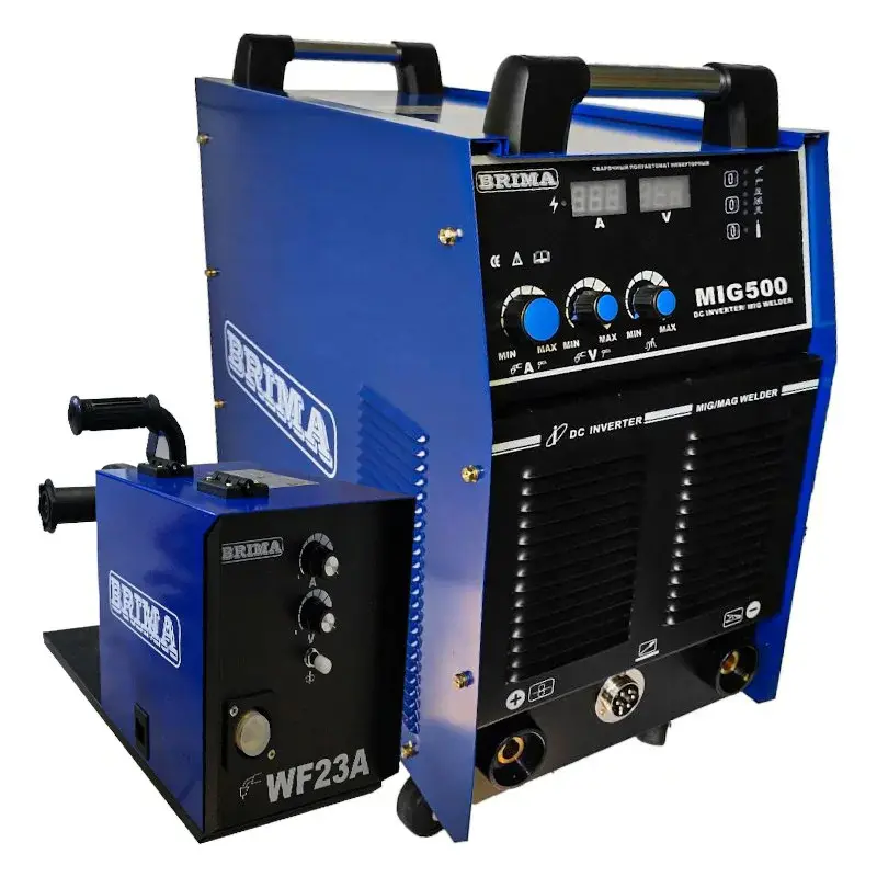 Сварочный полуавтомат BRIMA MIG-500 – инверторная модель профессионального класса с регулировкой сварочного тока от 60 до 500 А в режимах MIG/MAG. Для работы подходит проволока диаметром от 0,8 до 1,6 мм. Модель поставляется с набором дополнительных принадлежностей для сварки.