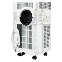 Благодаря функции авторестарт устройство автоматически возобновит работу с заданными настройками в случае кратковременного отключения электричества. Для удобства установки в комплекте предусмотрен 1,5-метровый воздуховод для выведения горячего воздуха и влаги на улицу. Перемещать кондиционер по комнате легко благодаря колесам.
