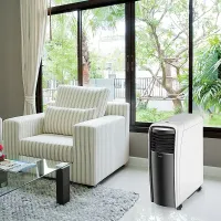 Мобильный кондиционер с номинальной мощностью охлаждения 3,24 кВт работает в четырех режимах: кондиционирование, вентиляция, осушение и Smart. C его помощью вы можете поддерживать температуру воздуха в диапазоне от 18 до 32°С, задавая ее с точностью до 1°С. Холодопроизводительность достигает 12000 BTU.