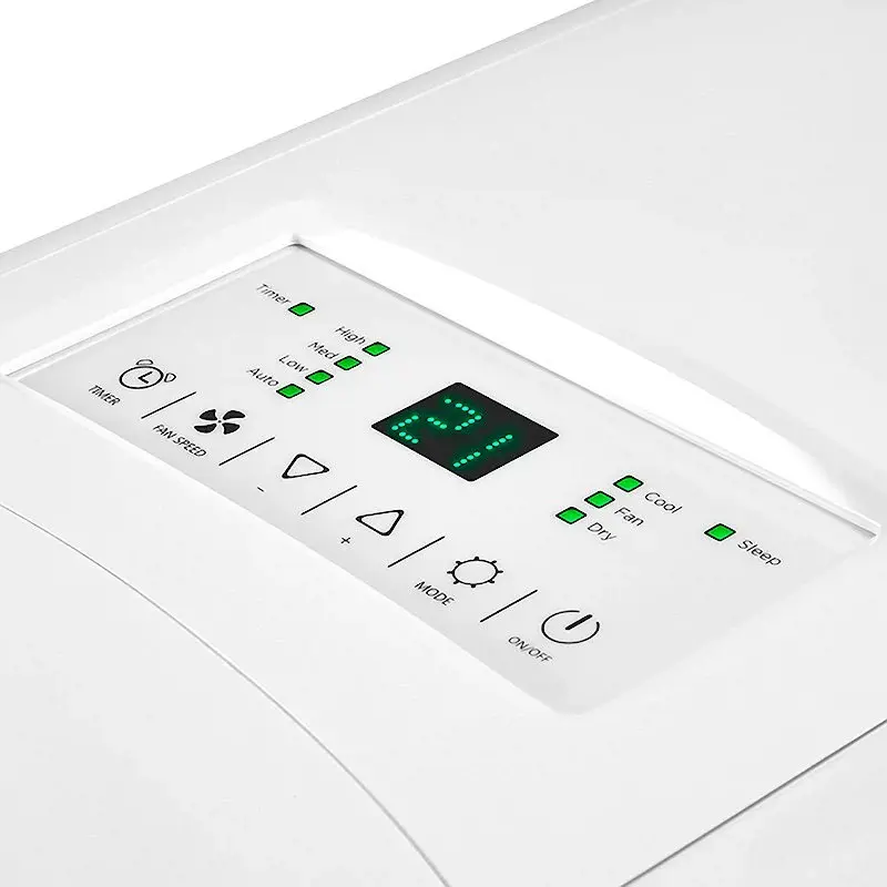 24-часовой программируемый таймер поможет задать удобное время включения и отключения. Съемный фильтр легко достать и промыть под струей воды. Для перемещения кондиционера предусмотрены бесшумные колеса и эргономичные ручки.