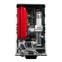 На дисплее с подсветкой отображаются рабочие параметры, такие как ступень мощности, температура теплоносителя, код ошибки и прочие. Котел функционирует по графику, указанному в настройках. Благодаря возможности установки трехходового клапана к электрическому котлу BAXI можно подключить бойлер для организации горячего водоснабжения. В этом случае становится доступной функция «антилегионелла». Она предназначена для периодического нагрева воды в контуре ГВС до высокой температуры с целью уничтожения болезнетворных бактерий и обеззараживания бака.