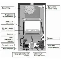 Продукты горения принудительно выводятся через двухтрубный дымоход из закрытой камеры сгорания. При отсутствии воды или недостаточном давлении в системе аппарат автоматически отключается. Датчики тяги, давления и пламени в совокупности с системами защиты от перегрева и замерзания обеспечивают безопасность эксплуатации котла Baxi ECO Nova 1.24F.