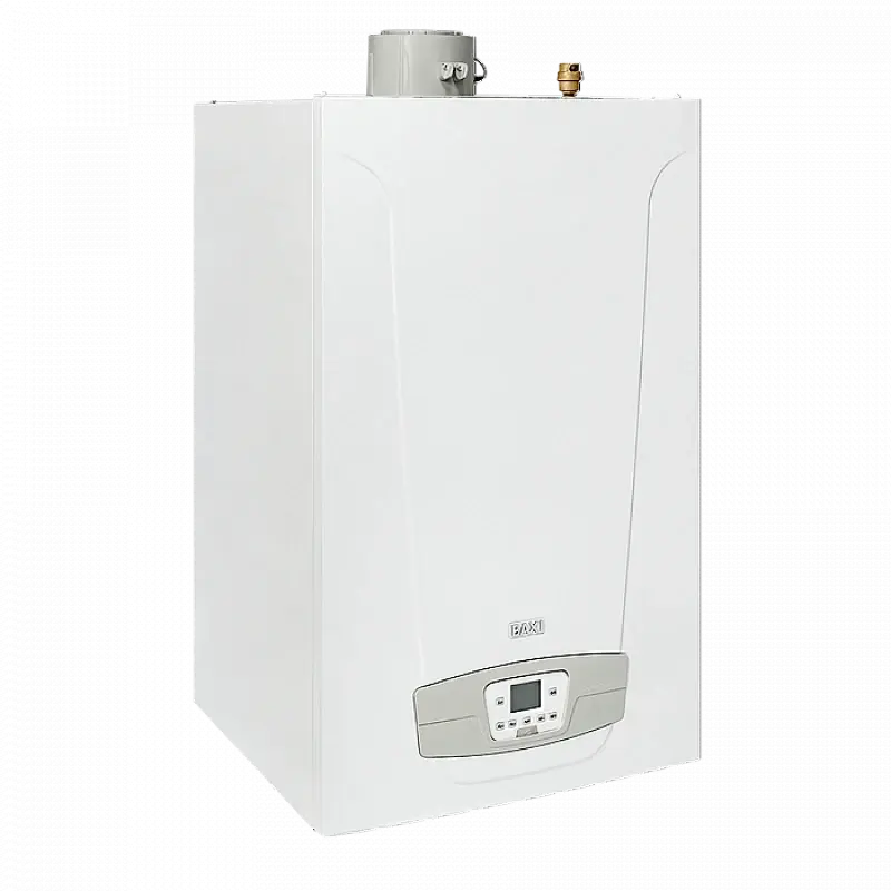 Газовый котел Baxi DUO-TEC MP+ 1.110 отличается экономичностью и эффективностью благодаря теплообменнику конденсационного типа. Все тепло, которое производится устройством, используется для нагрева теплоносителя. Остывшие до безопасной температуры газы выводятся наружу через дымоход закрытой камеры сгорания.