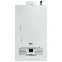 Оборудование оснащено информативным дисплеем для удобства управления. На экран выводится заданная температура нагрева. Наглядные пиктограммы информируют о выбранных режимах, неисправностях и состоянии газового котла Baxi. Кнопка перезапуска помогает восстановить работу оборудования в случае образования воздушных пробок в трубе подачи газа.