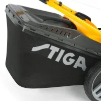 Режущая дека 46 см. с порошковым покрытием. Оборудована двигателем собственного производства компании Stiga ST 170 LS OHV Autochoke с удобной кнопкой запуска от электрического стартера от литиевого аккумулятора, объемом 166 куб.см. с автоматической воздушной заслонкой, мощностью 2,6 кВт./3,5 л.с., при 2900 об/мин., 60-литровым травосборником из текстиля и пластика с индикатором заполнения и специальным быстродействующим креплением, не допускающим просыпания собранной травы при отсоединении контейнера