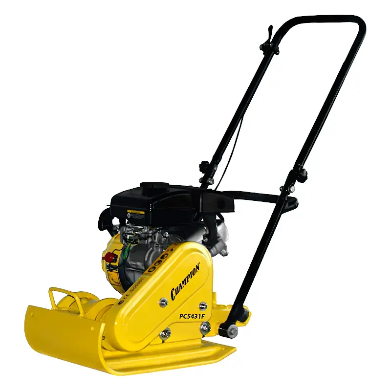 Виброплита Champion PC5431F - качественная модель, отличающая широким спектром применения. Она используется в ремонтной, строительной, дорожной и ландшафтной сфере. Высокие показатели мощности и производительности оборудования позволяют применять его для обустройства больших по площади участков. Конструкция разработана так, чтобы можно было с ее помощью выполнять работы в ограниченном пространстве, например, возле столбов, бордюров и траншей. Основное предназначение техники - уплотнение грунтов и сыпучих материалов, укладка плитки и брусчатки, дробление асфальта и скальных пород. Вес всей конструкции составляет 54 кг, она отличается компактными размерами и хорошей эргономичностью.