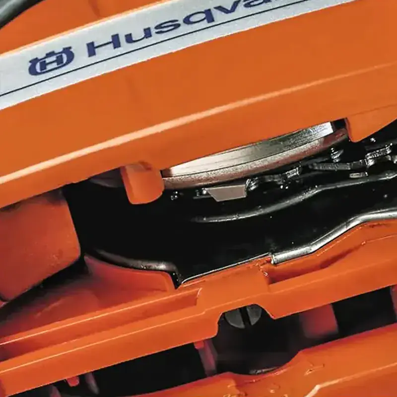 Бензиновая пила Husqvarna 353 оборудована инерционным тормозом цепи, который моментально останавливает шину при резком ударе или отскоке. Он также срабатывает, если перевести передний щиток вперед. Рукоятка охраны против отдачи защищает левую ладонь при соскальзывании от контакта с режущим полотном.