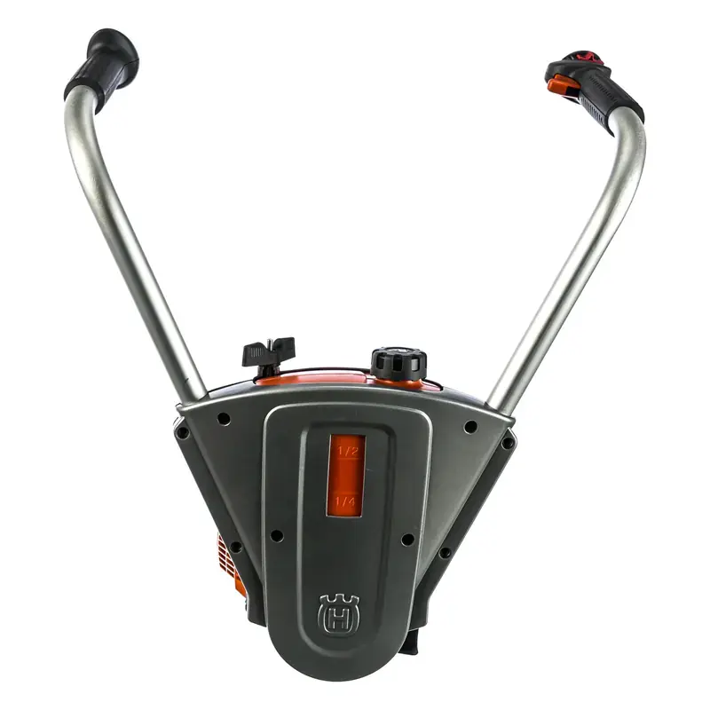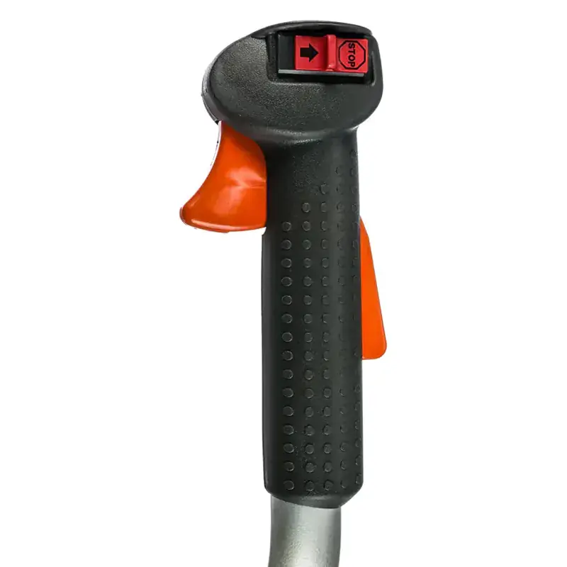 • Органы управления дроссельной заслонкой и стартом двигателя оборудованы комбинированным механизмом и расположены на правой рукоятке.