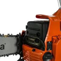 Эта модель рассчитана для интенсивной работы более 8 ч подряд даже при низких температурах. Номинальная мощность бензопилы - 3,4 кВт позволяет устанавливать шины длиной до 70 см. Максимальный крутящий момент бензопилы – 3,9 Нм обеспечивает ровный распил как мягких, так и твердых сортов древесины.