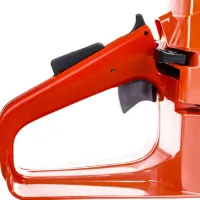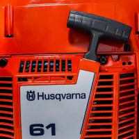 Интересная черта конструкции — в расположении ручки под углом более острым, чем в большинстве других моделей. Это обеспечивает удобный хват, естественное расположение рук и уменьшает усталость при долгой эксплуатации. Вероятно поэтому 61-я Хускварна до сих пор актуальна.