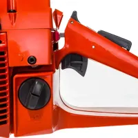 Также есть контроль подачи масла на цепь через специальный винт и аварийный тормоз цепи, который при необходимости срабатывает под силой инерции.