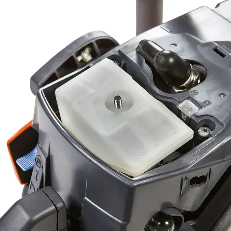 Техническое обслуживание пилы не займёт много сил и времени. Нейлоновый большой фильтр можно менять редко и делать это без инструментов. Глушитель разборный, что позволяет ремонтировать отдельные элементы.