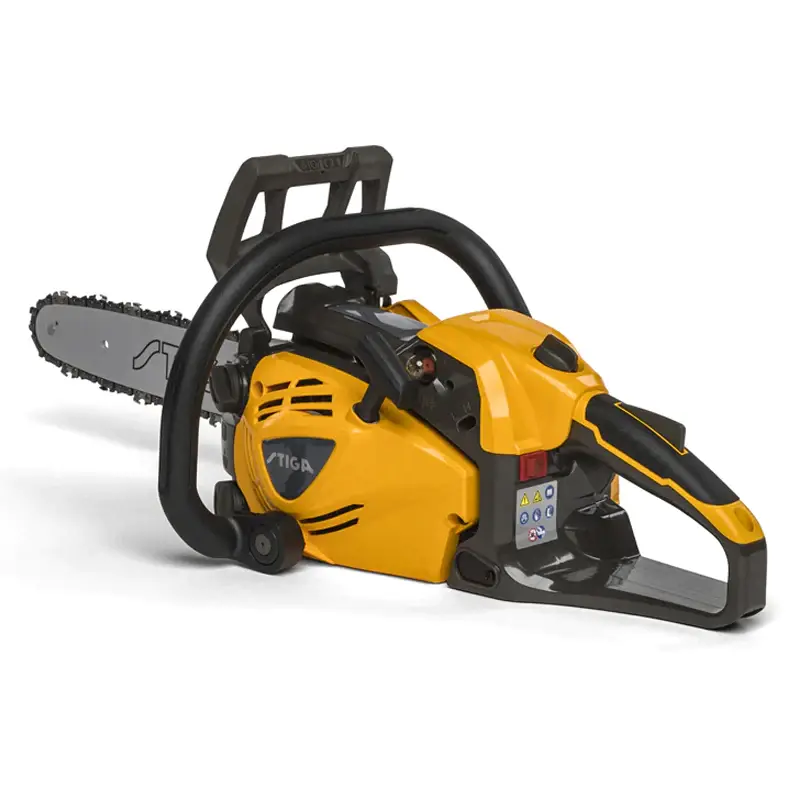 Компактная бензопила Stiga SP 316 (12") весит всего 3,8 кг и базово оснащена пильной шиной длиной 30 см. Предназначена для регулярного любительского применения (валка и распиловка небольших деревьев, обрезка ветвей, работа с материалами, заготовка дров). Дополнена надежным 2-тактным двигателем мощностью 0,85 кВт (1,15 л.с.; 12400 об/мин). Максимальная скорость вращения цепи (шаг 3/8_) составляет около 23 м/с. Для безопасной работы оператора предусмотрен ручной и инерционный тормоз.