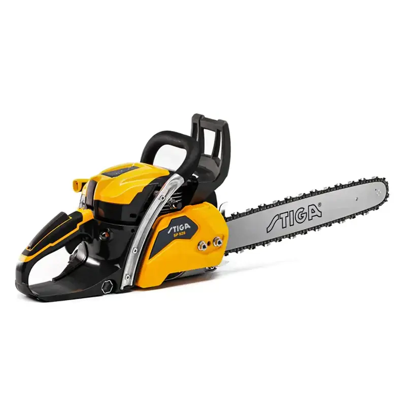 Полупрофессиональная бензопила Stiga SP 526 (15") – это надежный инструмент для эффективного выполнения широкого круга валочных, распиловочных и заготовительных работ. Базово укомплектована направляющей шиной 38 см и режущей цепью с шагом 0.325". Имеет практичную систему автоматического смазывания пильной гарнитуры с опцией регулировки уровня подачи. Двойная схема блокировки цепи (подвижной защитный щиток, инерционный тормоз) оберегает оператора от случайных травм при соскальзывании руки с передней трубчатой рукояти или отскакивании мотопилы от обрабатываемого материала.