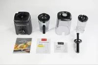 В комплекте с блендером идет звукоизоляционный колпак и дополнительный стакан для хранения под вакуумом объемом 600 мл (максимальная вместимость молочных продуктов - 500 мл).