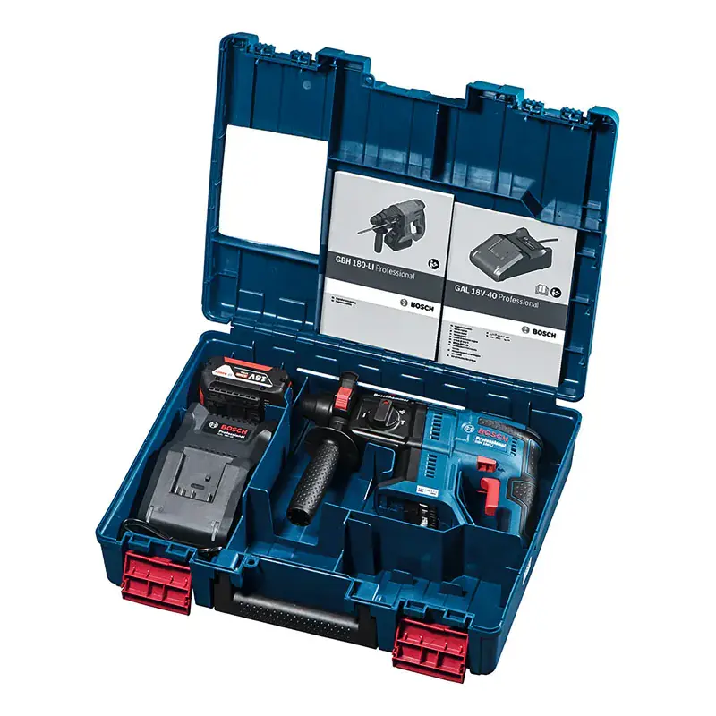 Аккумуляторный перфоратор Bosch GBH 180-LI c увеличенной ударной силой 2 Дж подходит для работы с плиткой, бетоном и другими прочными материалами. 3 режима работы и точная регулировка скорости вращения расширяют функционал инструмента, делая его универсальным. В комплекте поставляется 1 аккумулятор, зарядное устройство и кейс.