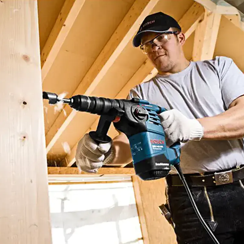 Перфоратор оборудован двигателем мощностью 800 Квт, который обеспечивает высокую силу удара. Благодаря этому им можно бурить отверстия диаметром до 28 мм в бетоне или эффективно использовать его как отбойный молоток. А система вентиляции в корпусе эффективно охлаждает двигатель, не позволяя ему перегреваться при слишком интенсивных нагрузках.