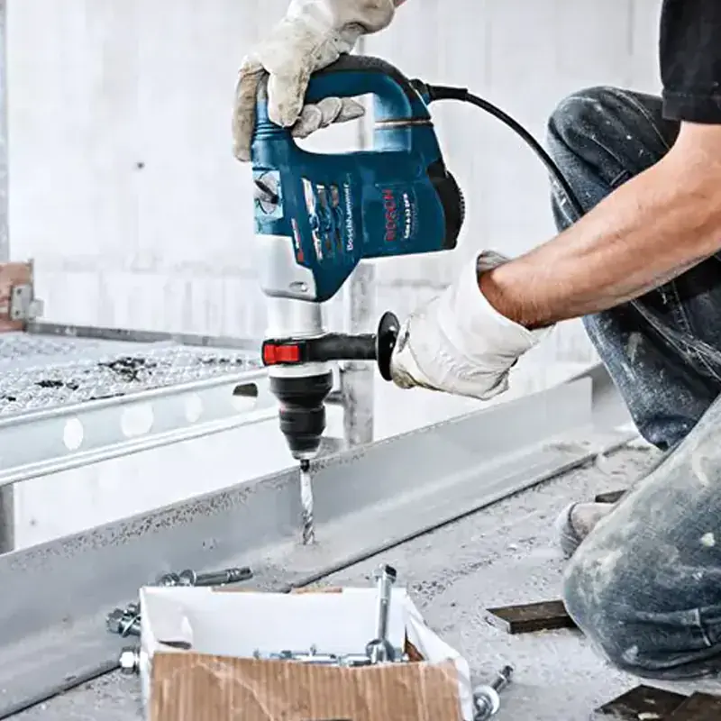 Автоматическая система защиты отключает двигатель перфоратора в случае перегрузки или блокировки сверла. Это гарантирует безаварийную работу и полную безопасность для оператора.
