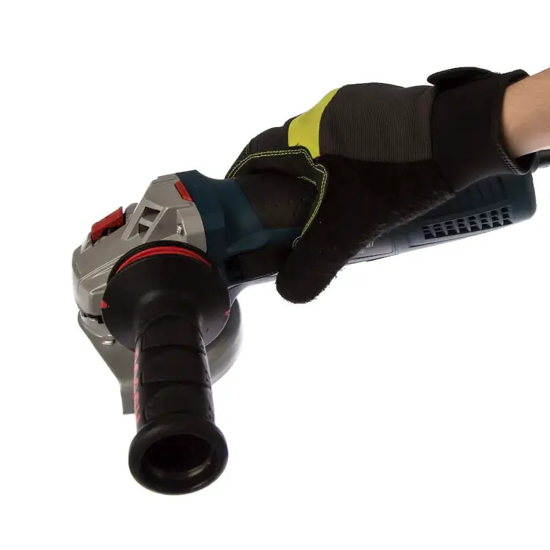 Двигатель болгарки Bosch выполнен по технологии Heavy Duty, которая гарантирует большой ресурс даже под постоянными высокими нагрузками. Регулировка частоты вращения диска выставляется колесиком в задней части корпуса. Для удобства предусмотрены системы плавного запуска и поддержания скорости на высоких оборотах.