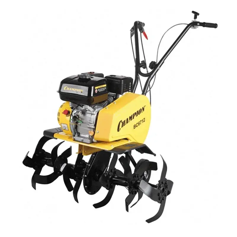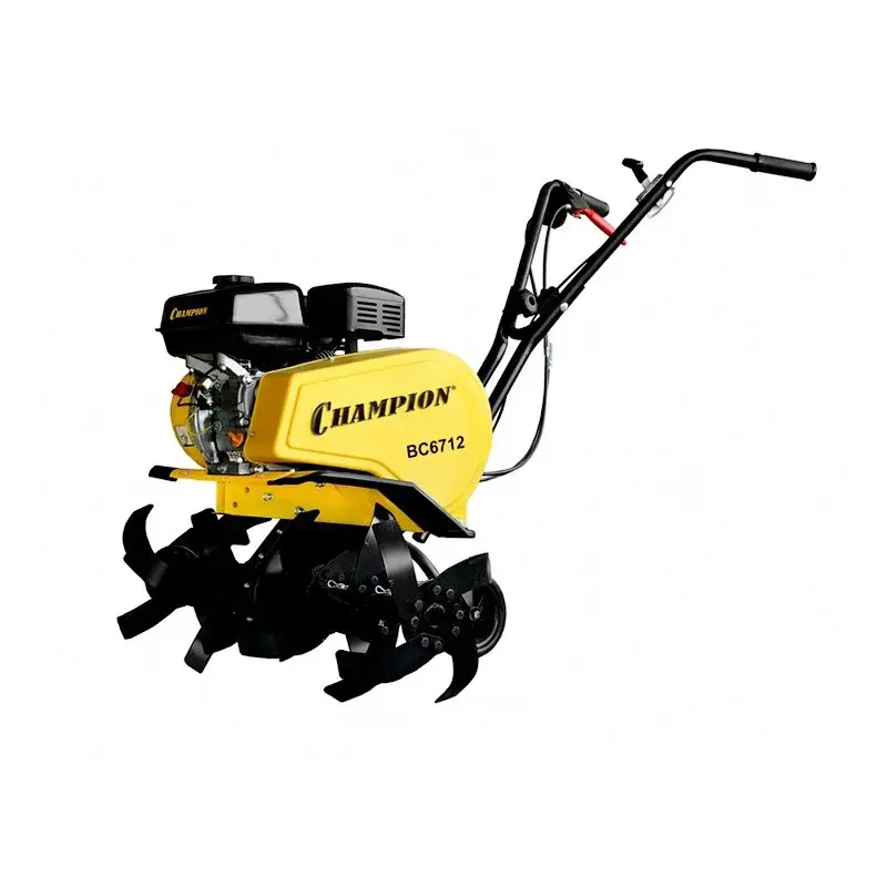 Мотокультиватор Champion BC 6712 весом в 50 кг и двигателем мощностью в 5,15 кВт подойдет для обработки фермерских участков площадью до 3000 м2. Для комфортной работы предусмотрено несколько скоростей перемещения, защитные крылья для фрез и складная конструкция рукоятки.