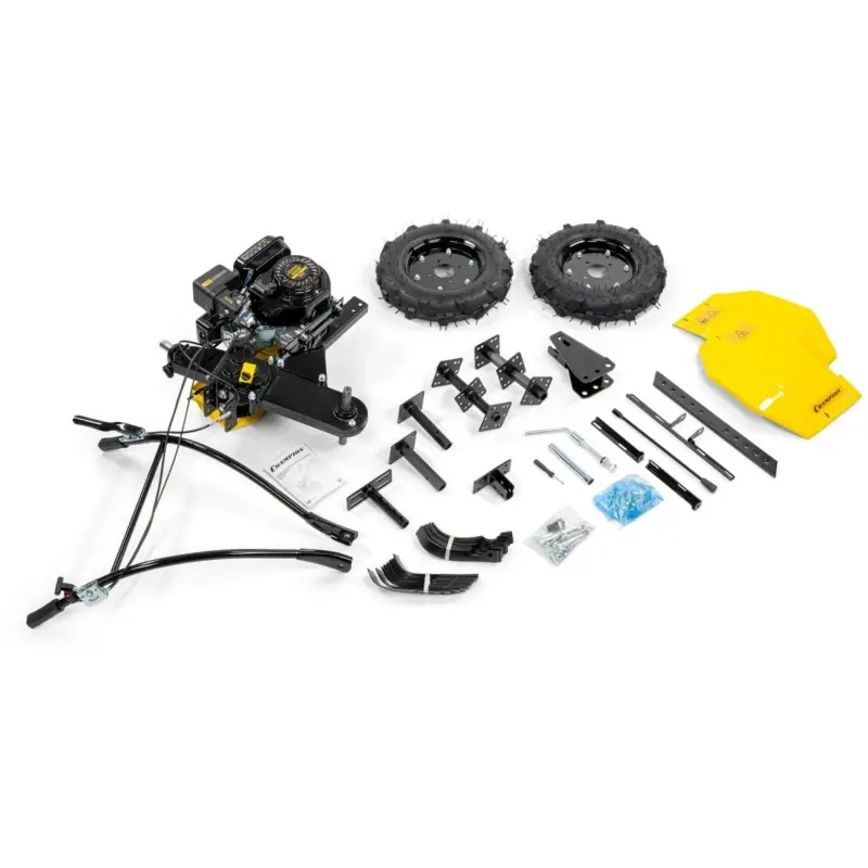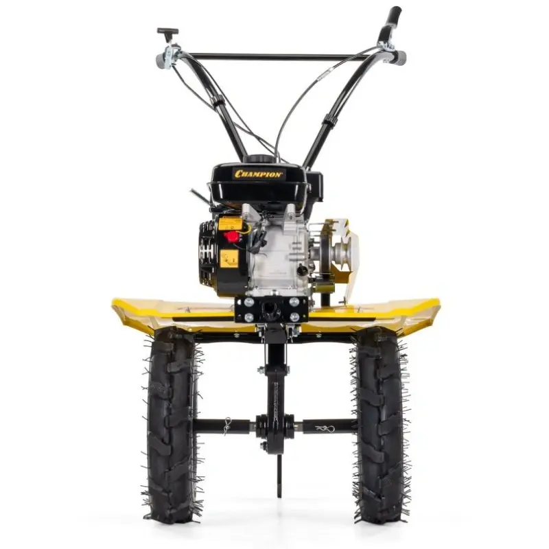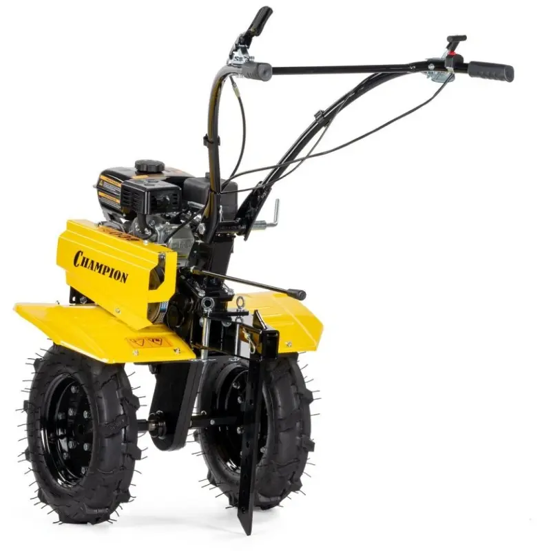 Мотоблок CHAMPION BC8733 представляет собой надежное и мощное устройство, предназначенное для обработки больших участков земли. Оснащенный бензиновым двигателем G210-26HK мощностью 7 лошадиных сил, он обеспечивает эффективную работу на площади более 20 соток. Шестеренчато-цепной редуктор и ременное сцепление гарантируют плавность и надежность в эксплуатации. Ширина вспашки достигает 81 см, а глубина - 35 см, что позволяет быстро и качественно обрабатывать почву. Две скорости вперед и одна назад обеспечивают удобство маневрирования. С колесами диаметром 4.00-10 см мотоблок легко преодолевает неровности. Емкость топливного бака составляет 3,6 литра, что позволяет работать длительное время без дозаправки. Комплектация включает плуг, картофелекопалку и косилку, что расширяет функциональные возможности устройства.