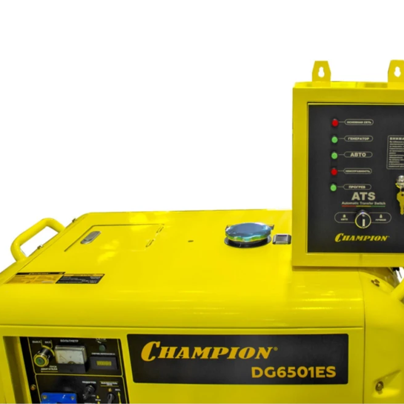 Генератор дизельный Champion DG6501ES + ATS c автозапуском - надежный вариант для периодического использования, в тот момент, когда отсутствует напряжение в общей сети энергоснабжения. Такой агрегат отлично подходит для дачи, загородного дома и для иных подобных объектов, на которых требуется резервное электроснабжение. Он позволяет запитать различную технику, к примеру, компьютер, микроволновую печь и др максимальной до 5,5 кВт.