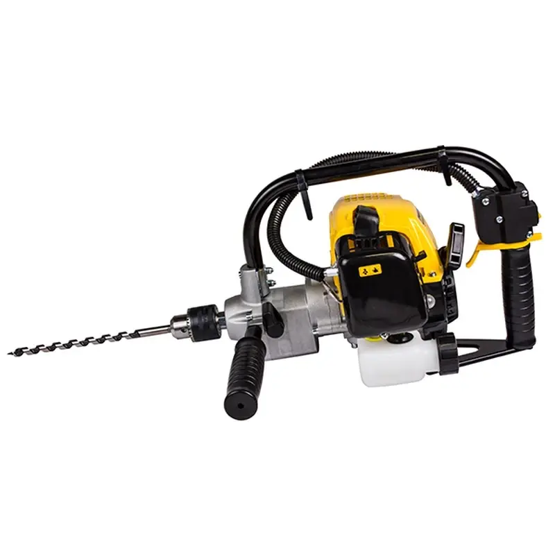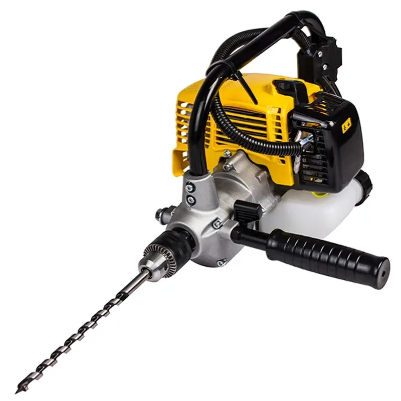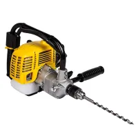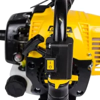 Инструмент предназначен для работы с любыми материалами, от древесины до бетона и металла. Максимальный диаметр просверливаемого отверстия – 13 мм. Мотодрель поддерживает функцию реверса. Она включает обратное направление вращения сверла для его аккуратного извлечения из материала. Для облегченного запуска предусмотрен ручной топливный насос (праймер) для подкачки бензиновой смеси в карбюратор.
