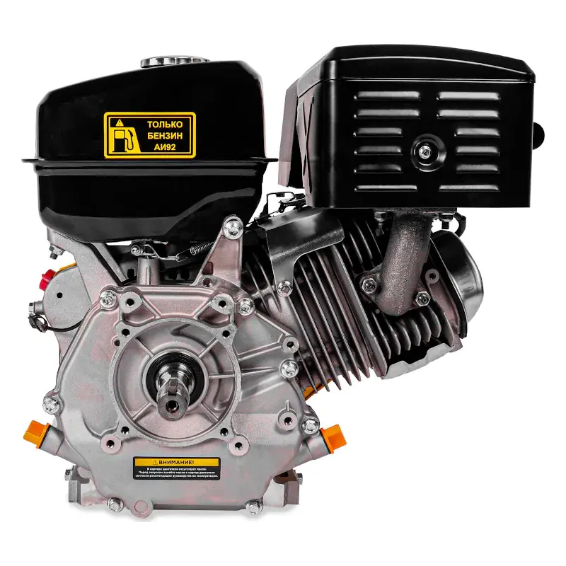 К корпусу вашего устройства двигатель G390-1HK крепится прочными болтами, а для передачи усилия предусмотрен вал диаметром 25.4 мм. Модель имеет высокий КПД, она экономно расходует топливо, поэтому полного 4-литрового бачка хватает на долго. Мотор достаточно прост в обслуживании, он имеет большой ресурс, поэтому капитальные работы требуются редко. В прилагаемой инструкции на русском языке есть рекомендации по обслуживанию и графики сервисных работ. Заводится двигатель при помощи пускового тросика, процедура не требует большого усилия и много времени, так как зажигание хорошо продумано и стабильно работает даже в плохих погодных условиях.