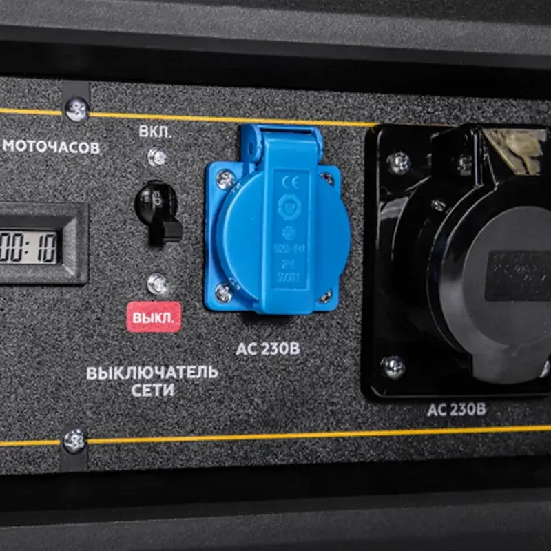 Стрелочный вольтметр на панели управления служит для визуального контроля над величиной напряжения. Также имеется счетчик моточасов.
