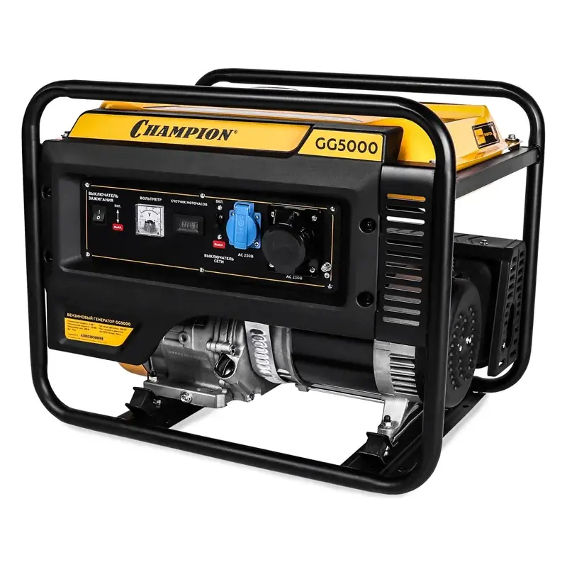 Генератор Champion GG5000 предназначен для снабжения электричеством приборов мощностью до 5,5 кВт. Характеризуется стабильной работой при невысоких показателях расхода топлива, что обеспечивает продолжительное и эффективное электроснабжение. Оснащен силовой розеткой 32А для подключения приборов и аппаратов повышенной мощности.
