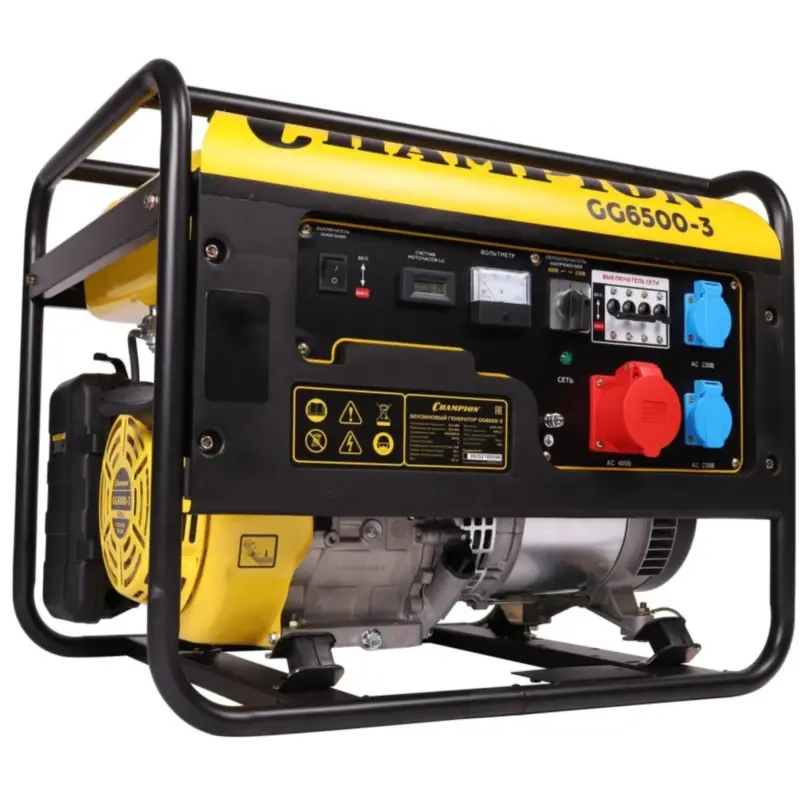 Генератор бензиновый Champion GG6500-3 - мощный и высокопроизводительный инструмент, предназначен для обеспечения автономного электроснабжения во время путешествий за город, отсутствия необходимого напряжения в сети, а также для подзарядки различных электроприборов. Модель оснащена мощным двигателем в 15 л.с. с воздушным охлаждением, рабочий объем - 420 см3.