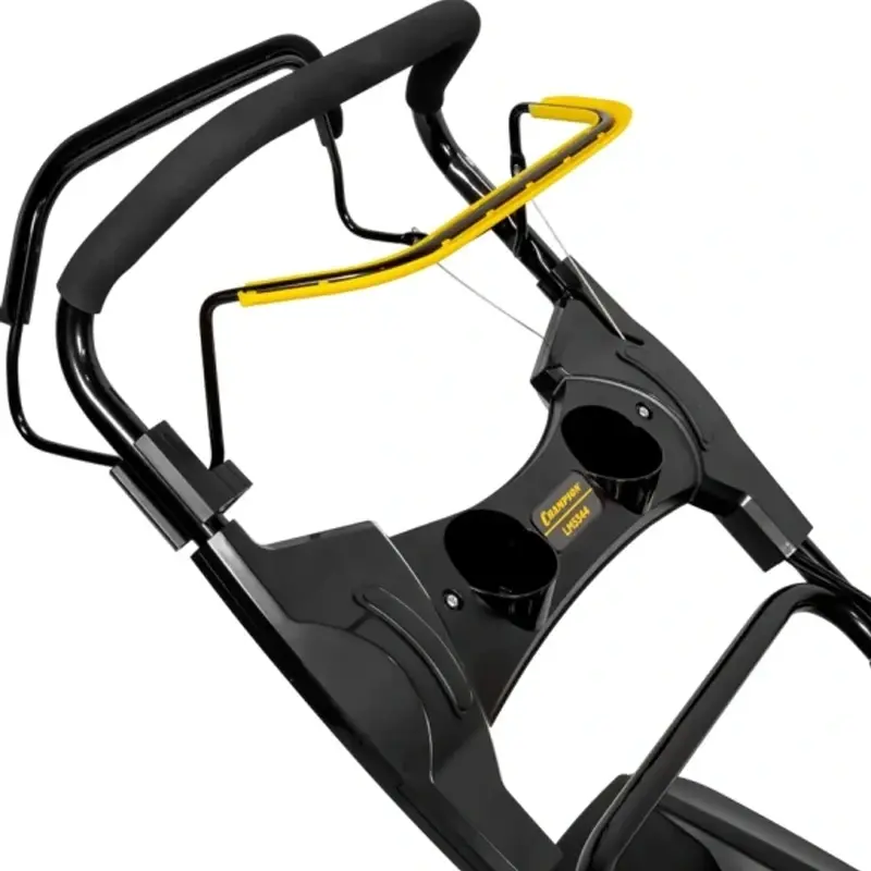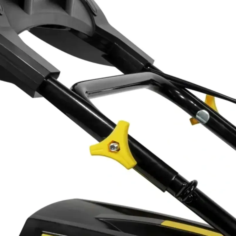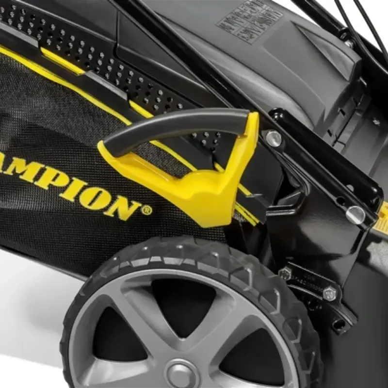 Газонокосилка Champion LM 5344 имеет центральную регулировку высоты среза травы. Осуществляется регулировка одним удобным рычагом, расположенным в районе задней колесной оси. Над рычагом регулировки расположены ступени высоты, всего их семь. Рукоятки косилки крепятся быстрозажимными барашковыми соединениями, позволяющими быстро сложить или разложить рукоятку, а так же отрегулировать ее под рост оператора. Сама рукоятка выполнена из полых стальных трубок, обеспечивающих хорошую жесткость конструкции. Газонокосилка Champion LM 5344 может окашивать газоны площадью до 20 соток.