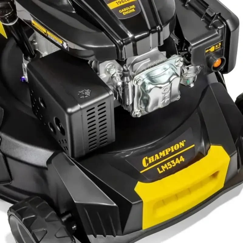Газонокосилка бензиновая Champion LM5344 – модель с большой мощностью и захватом для окашивания больших площадей. Сердцем косилки является бензиновый верхнеклапанный четырехтактный двигатель собственного производства, работающий на чистом 92 бензине. Двигатель развивает мощность в 6 лошадиных сил. Такой мощности вполне достаточно не только для вращения стального двухлопастного ножа, но и для обеспечения привода на заднюю колесную ось. Корпус косилки стальной с передним стальным бампером безопасности.