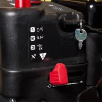 Все элементы управления вынесены на рукоятку для удобства использования. Держатель регулируется по высоте для адаптации под ваш рост. В его верхней части находится галогенная фара для удобной работы в сумерках и при недостаточном освещении.