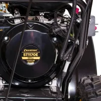 Комфортный темп работы настраивается при помощи коробки передач. На выбор есть 6 скоростей вперед и 2 назад. Реверсивный ход облегчит разворачивание, особенно на узких дорожках, а также поможет при застревании колес.