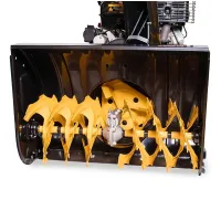 Желоб выброса снега настраивается при помощи рычага, проворачиваясь на 190 °. Это позволит определить нужное направление отбрасывания.