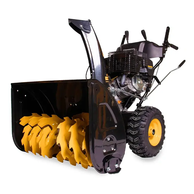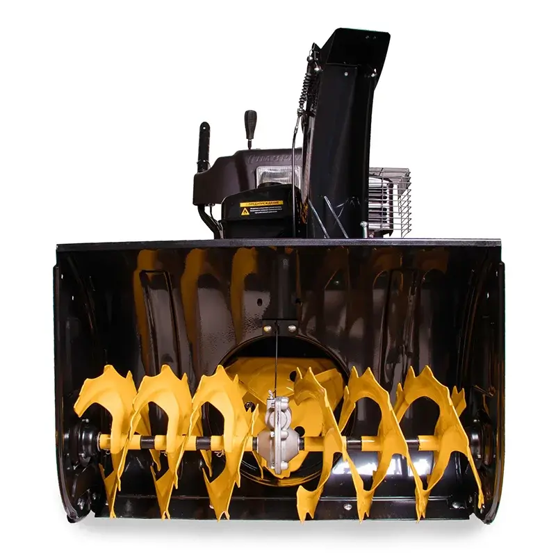 В бензиновой снегоуборочной машине установлен стальной шнек с зазубринами. Механизм перемалывает даже плотные комки снега, покрытые коркой льда.
