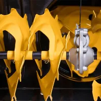 Снегоуборщик оснащен большими колесами тракторного типа диаметром 14 ". Глубокий рисунок колес обеспечивает хорошее сцепление даже с обледеневшей поверхностью. А для легкого перемещения на крутых подъемах предусмотрена функция разблокировки колес.