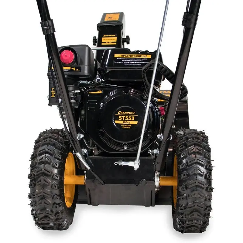 Бензиновый снегоуборщик CHAMPION ST553 с шириной захвата 53 см подходит для бытового применения и будет эффективен для уборки небольшой придомовой территории. Для комфортного использования на выбор есть несколько скоростей передвижения, 2-ступенчатая система шнеков и большие колеса с рельефной поверхностью.