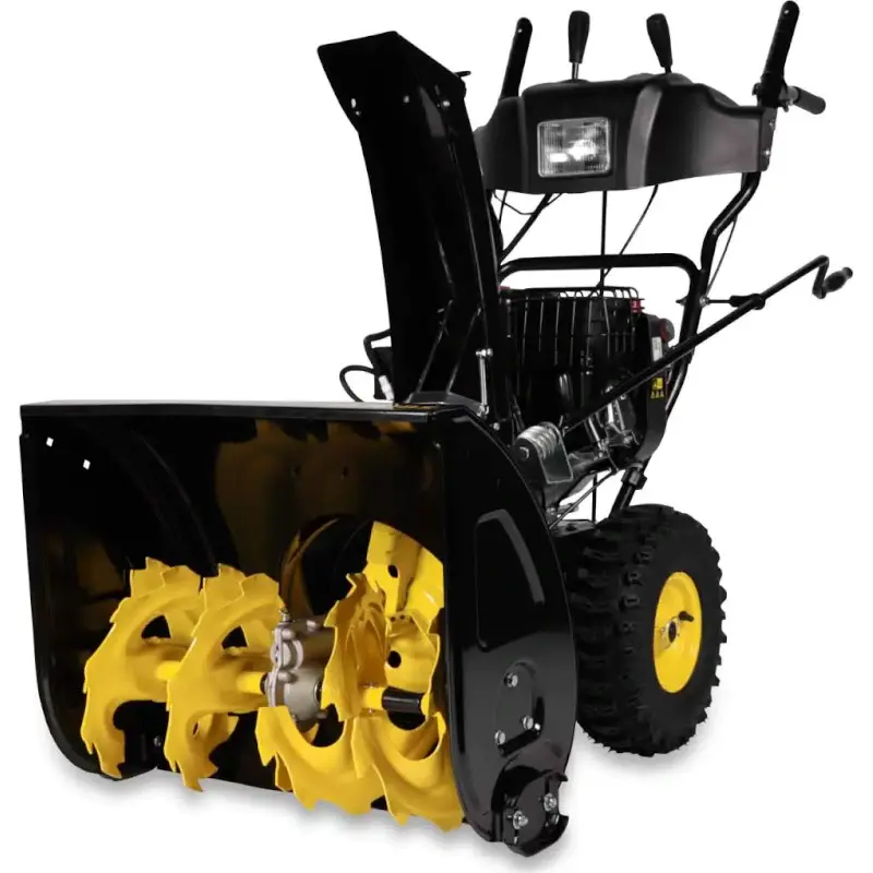 Бензиновый снегоуборщик движется самостоятельно — достаточно выбрать скорость перемещения вперед из шести предложенных. Также на выбор есть две скорости заднего хода, которые повышают маневренность. Внушительная максимальная дальность выброса 15 м позволяет комфортно работать на больших территориях.
