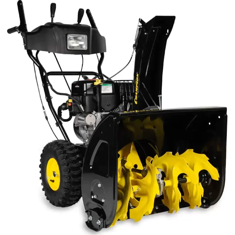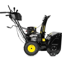 Бензиновый снегоуборщик Champion ST761BS расчищает от сугробов дорожки шириной 61 см за один подход. Удобен в использовании за счет встроенной фары, восьми скоростей и функции разблокировки колес.