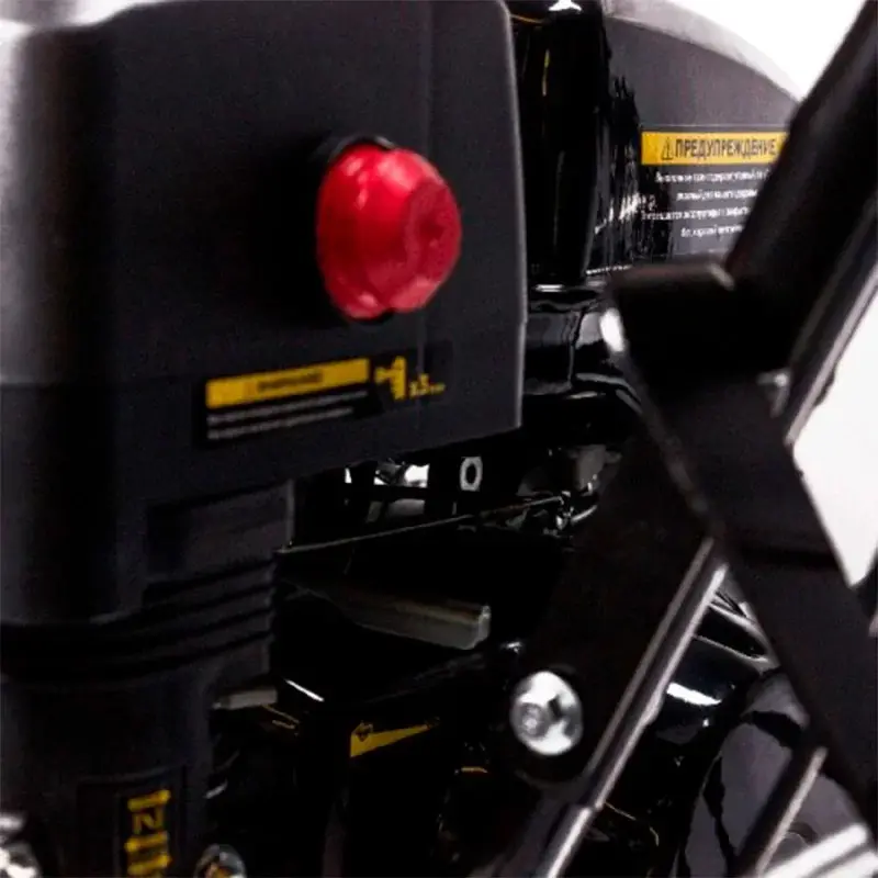 Запуск бензинового снегоочистителя осуществляется как вручную, так и с помощью электростартера. Система помощи при включении работает от бытовой сети 220 В. Запуск выполняется по нажатию одной кнопки.