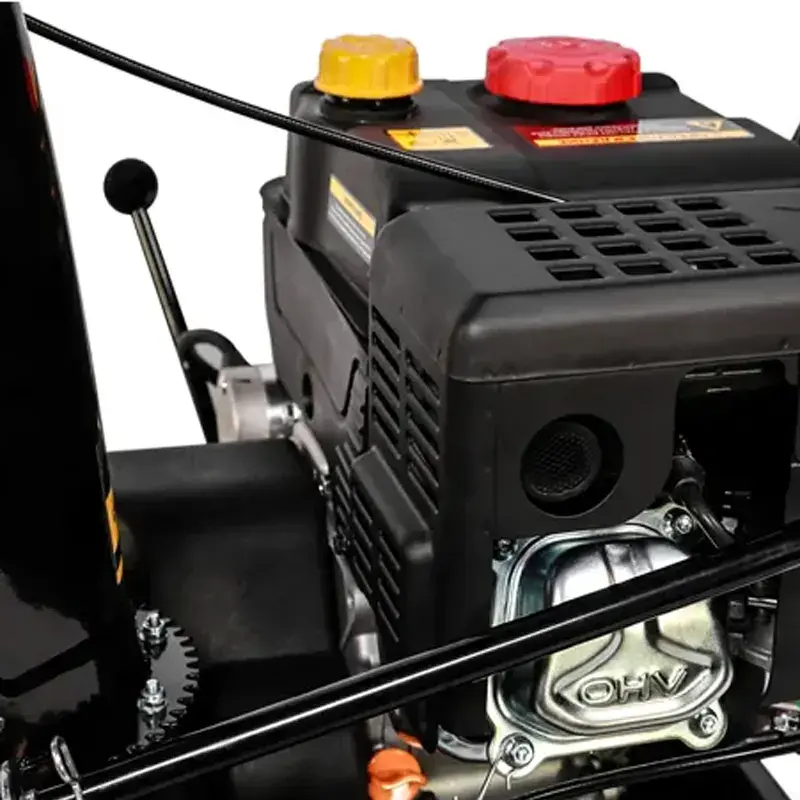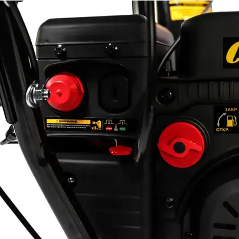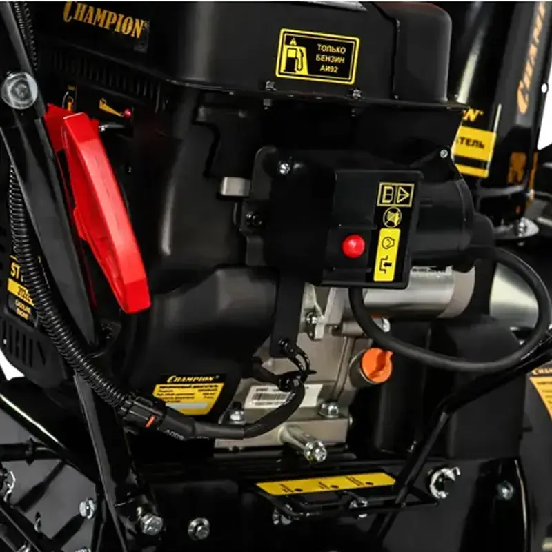 Все элементы управления бензинового снегоуборщика CHAMPION удобно расположены на панели оператора: рычаги тяги переключения передач и поворота гусениц, ручка изменения направления выброса, кнопки включения освещения и подогрева рукояток. Наличие шести передних передач и двух скоростей заднего хода обеспечивает высокую маневренность машины. В зависимости от плотности и высоты снежного покрова можно выбрать необходимый темп передвижения.
