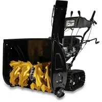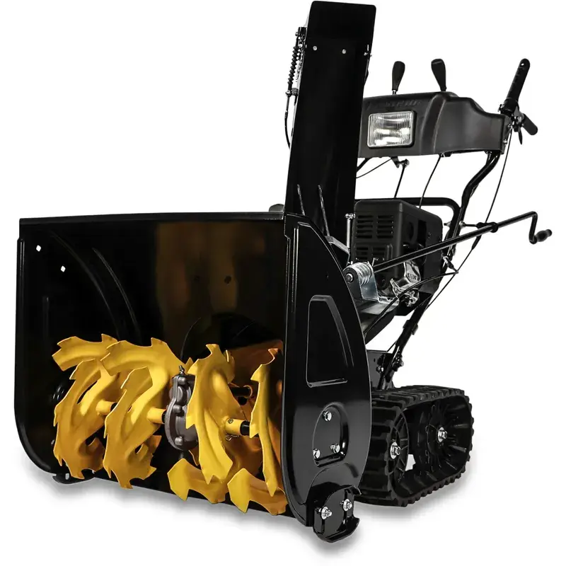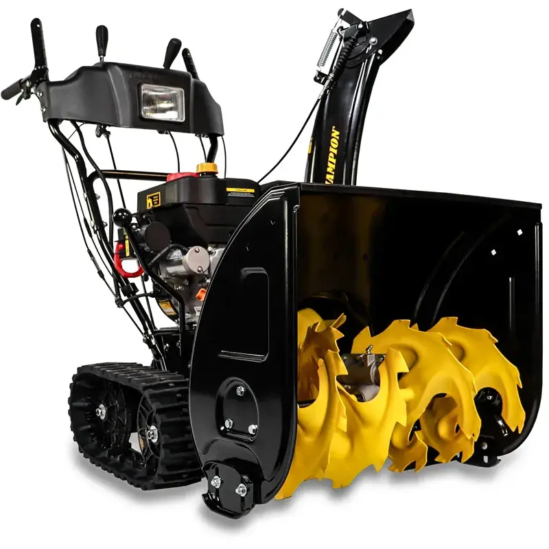 Бензиновый снегоуборщик CHAMPION STT761E на гусеничном ходу с шириной обработки 61 см отличается высокой проходимостью и эффективностью уборки снега разной плотности. Четырехтактный двигатель мощностью 7 л.с. заводится с помощью ручного стартера или устройства электрозапуска от сети 220 В. Машина оснащена яркой фарой, подогревом рукояток и удобной панелью оператора. Дальность выброса достигает 14 м.